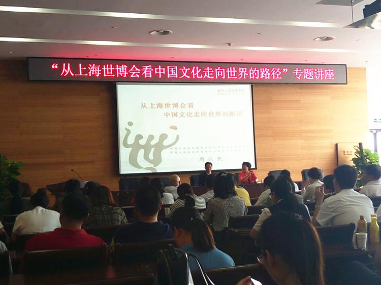 讲座邀请了中国人民政治协商会议全国委员会常务委员、中国人民政治协商会议上海市委员会副主席周汉民做了“从上海世博会看中国文化走向世界的路径”的专题讲座。周主席分别从世界城市的四大特征、上海世博会对全球的启示以及中国灿烂文化走向大千世界三个方面,结合自身的丰富经历、他与上海世博会的特殊渊源,通过详细的数据和精彩的故事,为在座的党员领导干部深入浅出地阐述了“中国文化”的深刻内涵。在讲座中,他还结合参与上海世博会的管理工作经验和案例,对嘉定区创建全国文明城区工作提出了参考借鉴意见和建议。