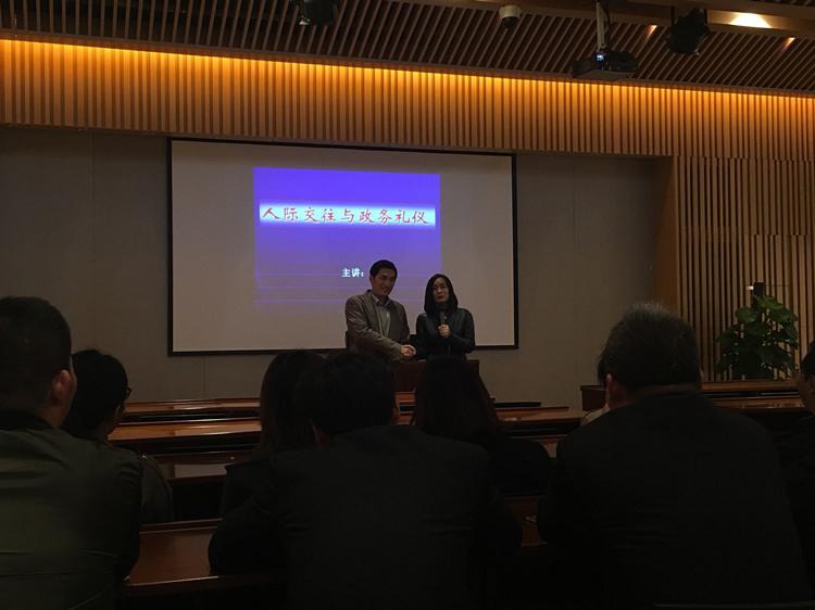 培训由上海市礼仪协会范春梅老师主讲,她从用手指做“人”字、握手等几个简单的互动开始切入《人际交往与政务礼仪》的主题,讲述与人交往的礼仪以及公务员在工作中如何管理和约束自己的形态。范老师用举例子、讲故事的方式,分享她对礼仪的理解。《将自己的脚包起来》告诉我们,“想改变世界很难,要改变自己则比较容易,与其改变世界,不如先改变自己”。礼的实质是对别人表示尊敬,礼仪是对别人表示尊重的方式。结合“投纸球游戏”引发的启示是“改变一种姿态或一种方式,最大的受益者便是你”。最后,范老师还从表情、眼神、身姿等方面讲述了平时工作生活中需注意的一些礼仪规范。