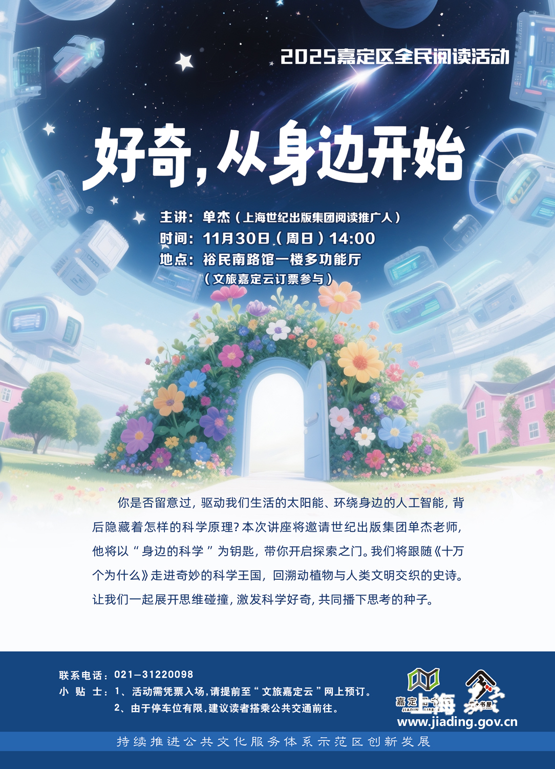 - 嘉定区图书馆一楼多功能厅(裕民南路1288号)
