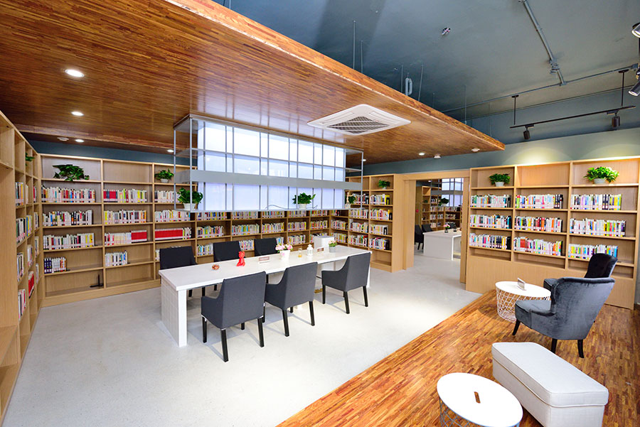 我嘉书房(菊园·嘉筱)位于菊园新区嘉筱社区内,面积 170平方米,设计座位 50 余个,藏书6000 余册呈现出一个乡味十足的主题式家庭阅读空间,营造充满“嘉·乡”味道的公共阅读空间。